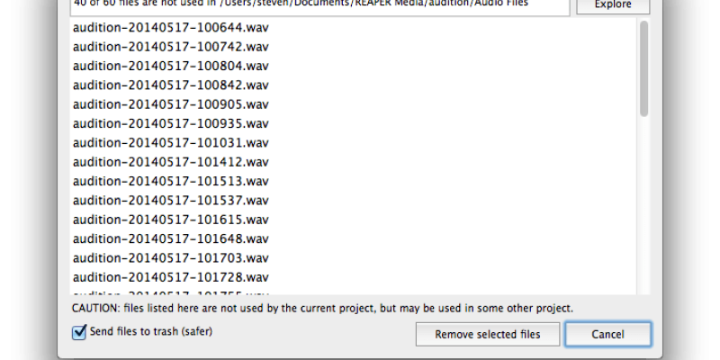 Over time, audio files in your projects begin to take up an incredible amount of space on your drive. But, not all of these files are needed. Your project directories are probably littered with files referring to old flubs and bad takes that really should be deleted. It’s time to do some spring clea...