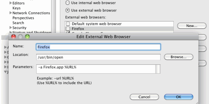 It may seem a bit counter-intuitive, but since Mac OSX is based on BSD, you open programs (including web browsers) like you do on other UNIX derivatives. In Preferences, under General, you will find Web Browsers. Add a new browser. Name it anything you like. Put /usr/bin/open into the Loca...