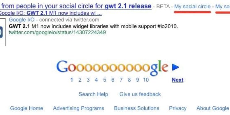 Neither the My social circle nor the My social content links actually worked, but I wonder if this is a preview of Google’s rumored Google Me Social Network?